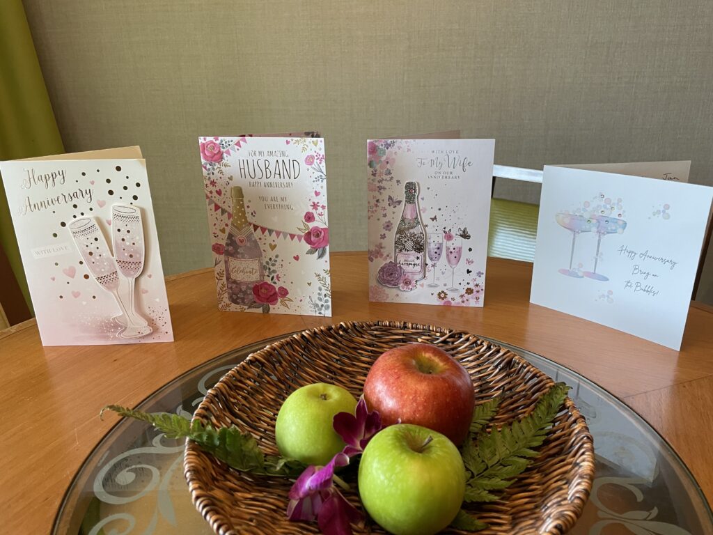 Tuesday morning, 2 September, and it was our 29th wedding anniversary. Woo hoo – congrats to us! We opened our cards and then headed down to breakfast.