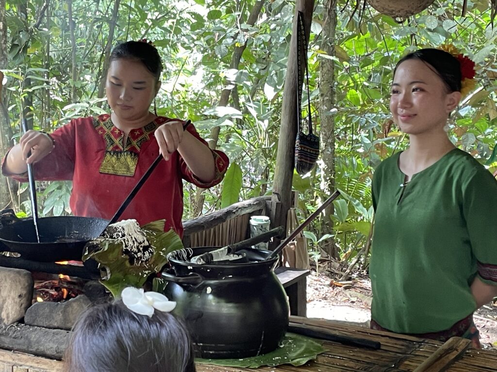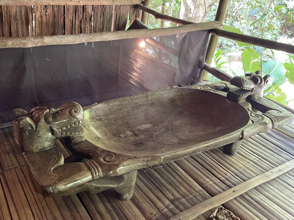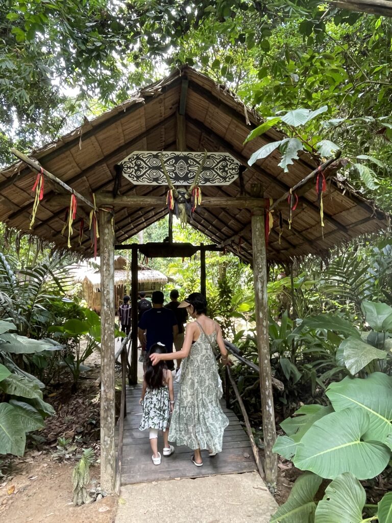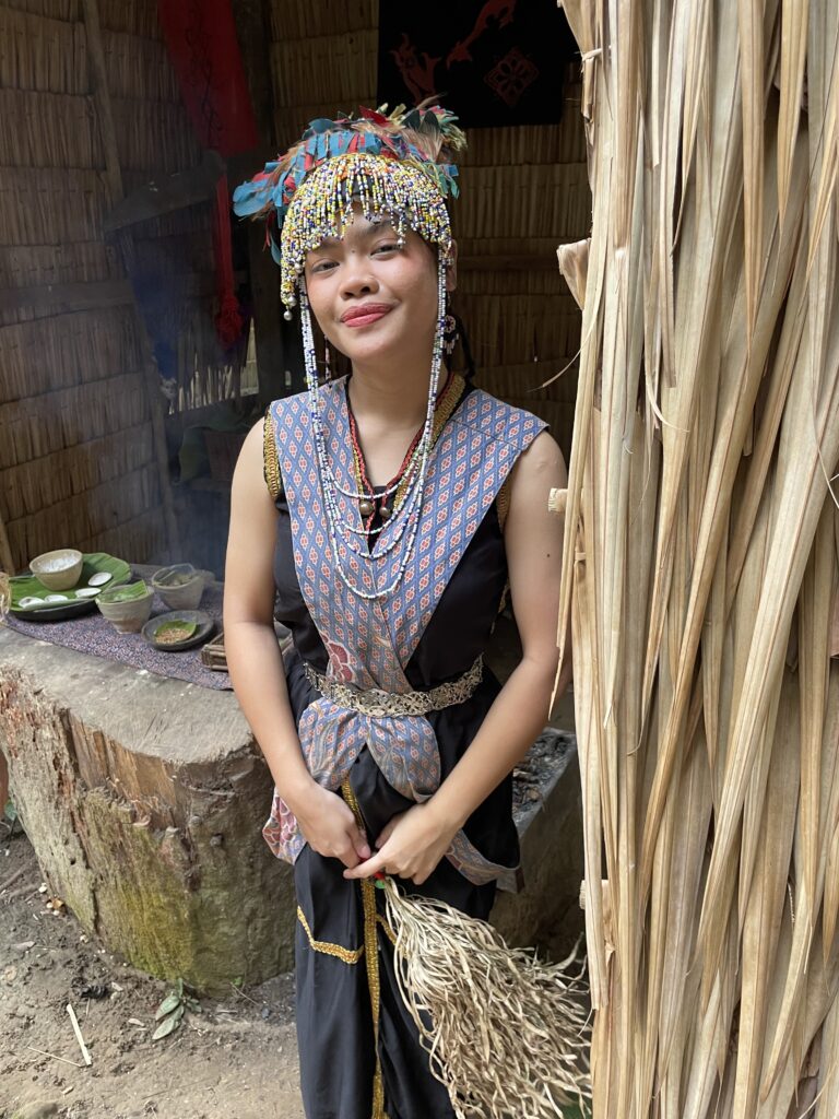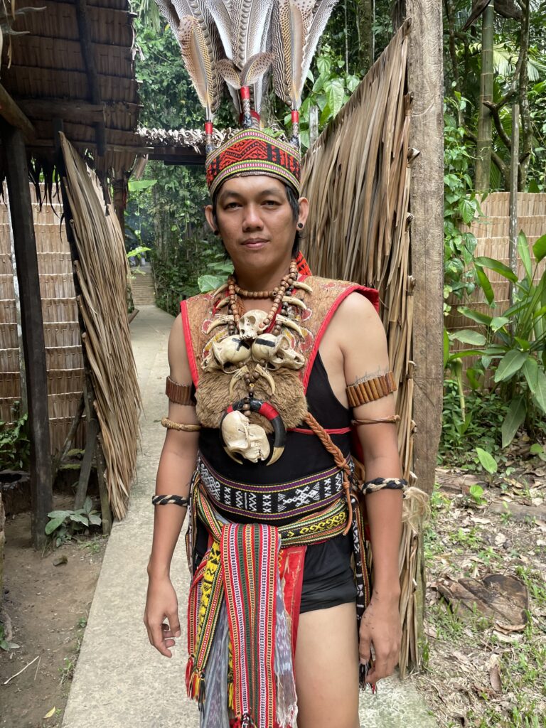 We were called and joined the rest of our group – only the transfer had been private this time… We walked across the rope bridge (which was a bit wobbly) and then checked out the variety of longhouses showing how different tribes lived. Some were communal facilities and others completely segregated on gender grounds. All were originally headhunters so lots of skulls around and our guide admitted that most of them were alcoholics as they make (and consume) a lot of rice wine LOL! The final longhouse belonged to a tribe with Islamic heritage so no alcoholics there….