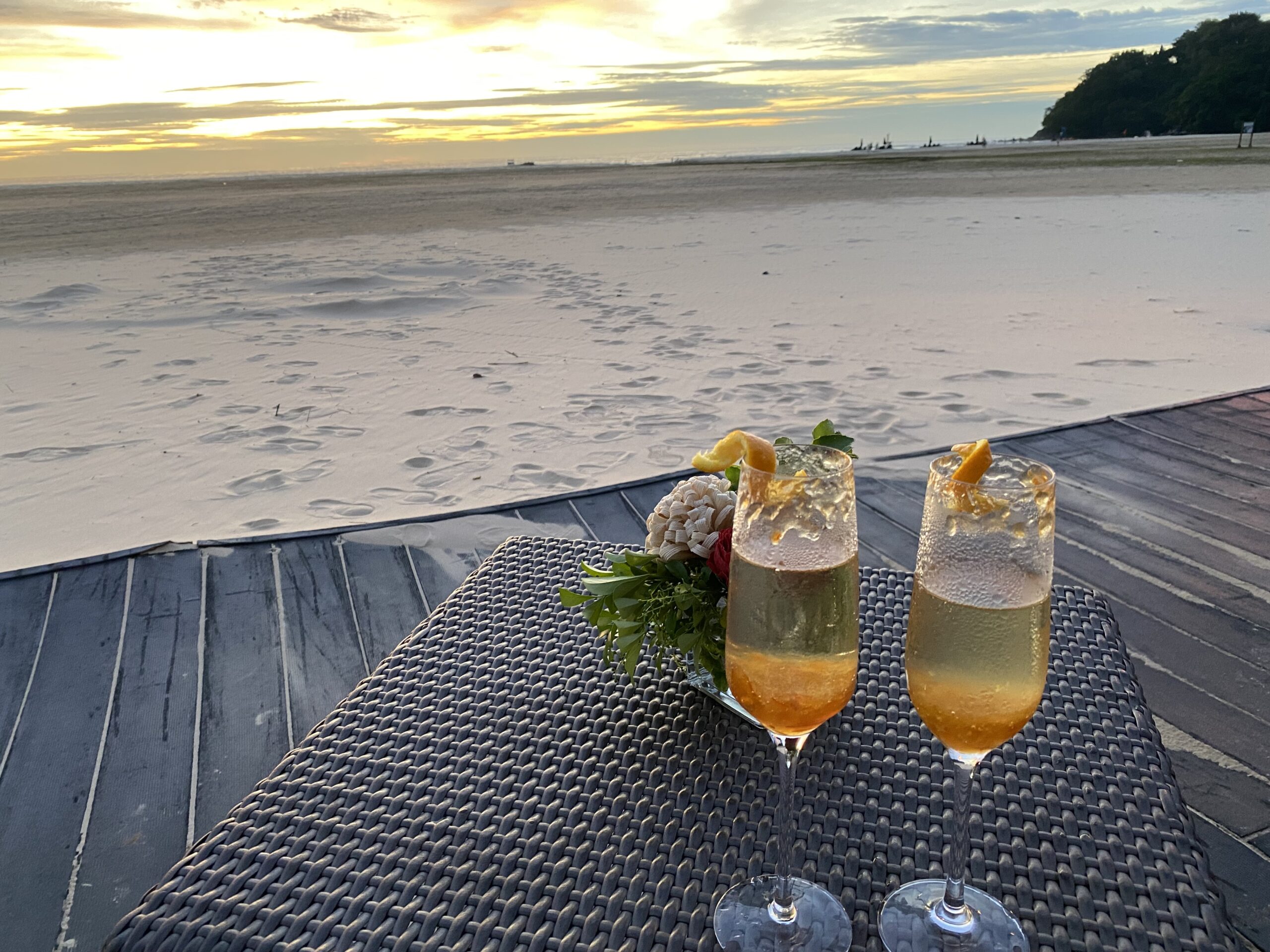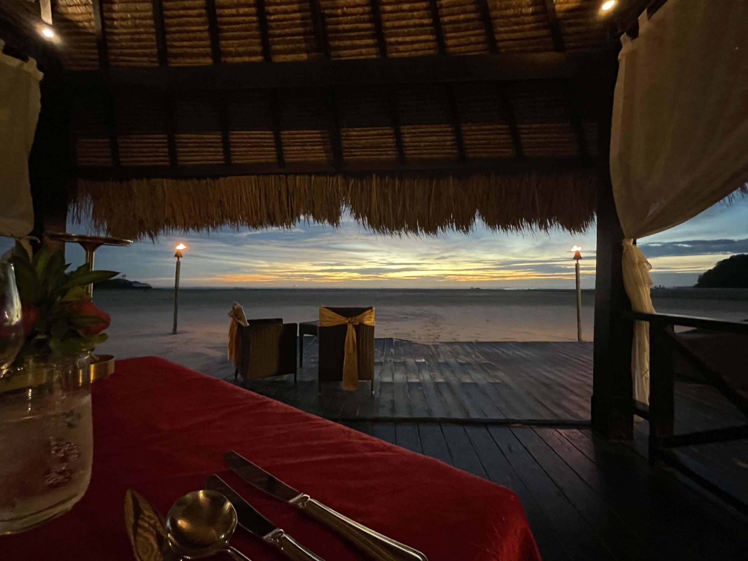 We headed down to reception at 6pm and met with our butler for the night…who walked us to the beach and to our private cabana…just in time for the sunset.