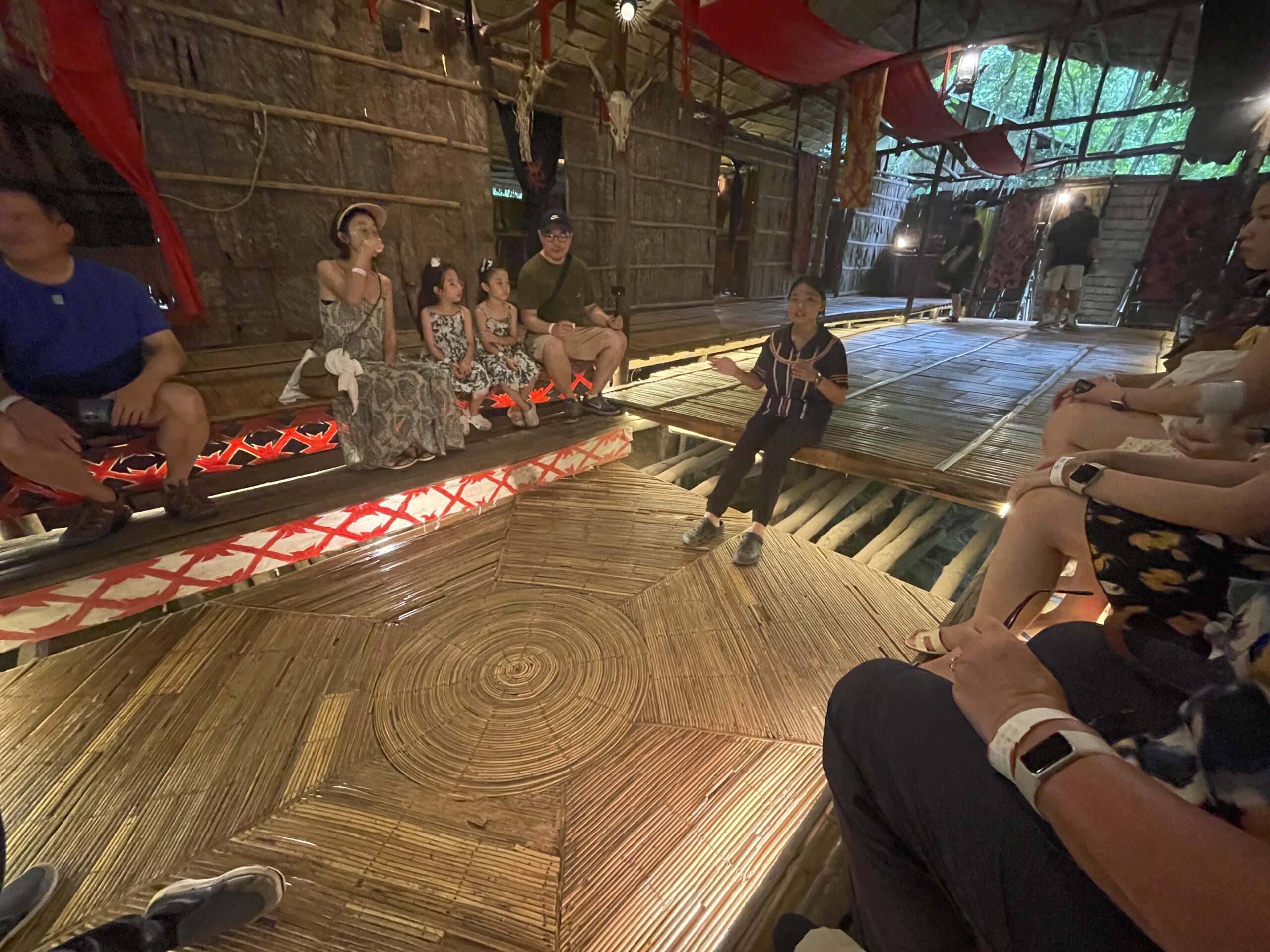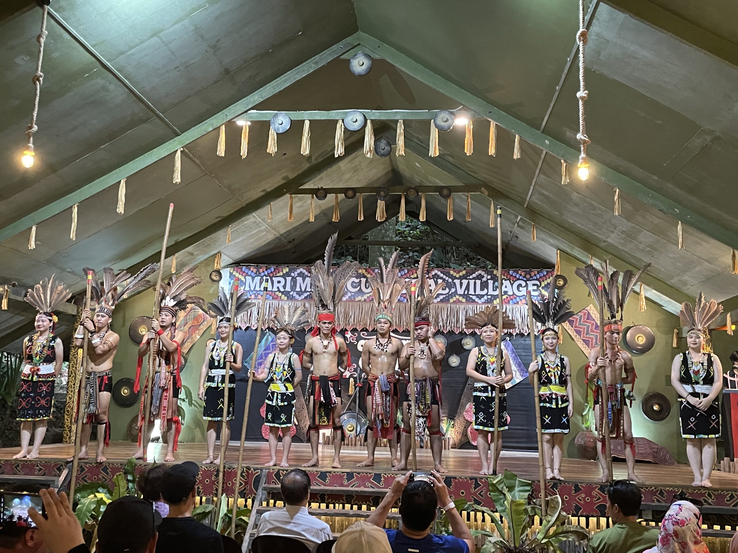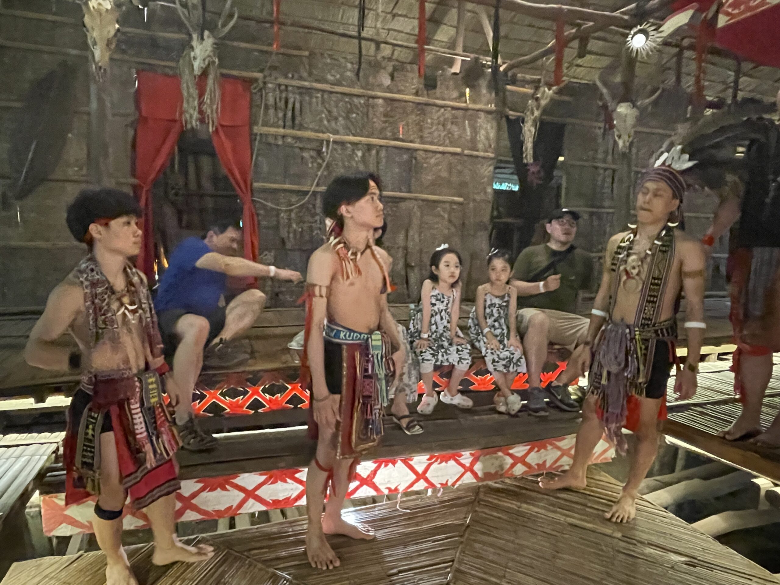 We were called and joined the rest of our group – only the transfer had been private this time… We walked across the rope bridge (which was a bit wobbly) and then checked out the variety of longhouses showing how different tribes lived. Some were communal facilities and others completely segregated on gender grounds. All were originally headhunters so lots of skulls around and our guide admitted that most of them were alcoholics as they make (and consume) a lot of rice wine LOL! The final longhouse belonged to a tribe with Islamic heritage so no alcoholics there….