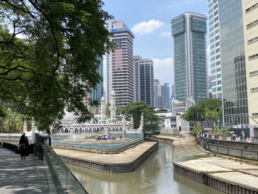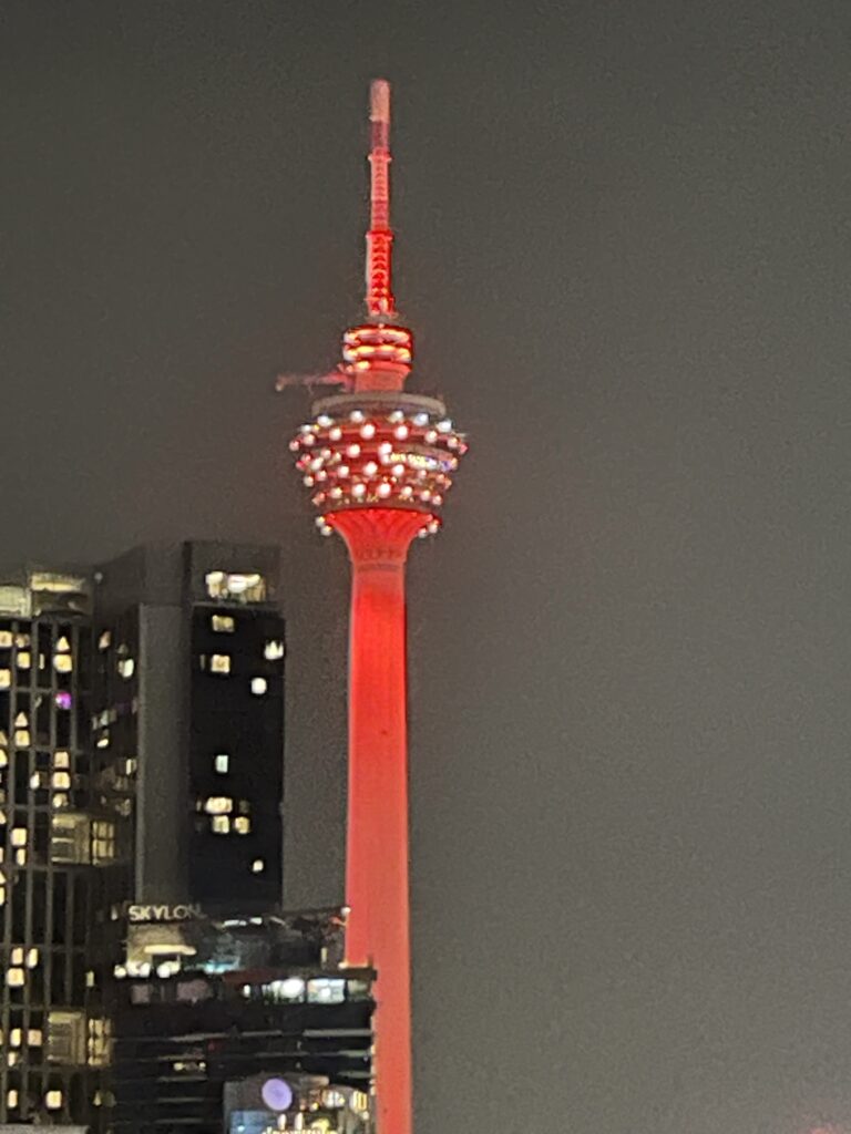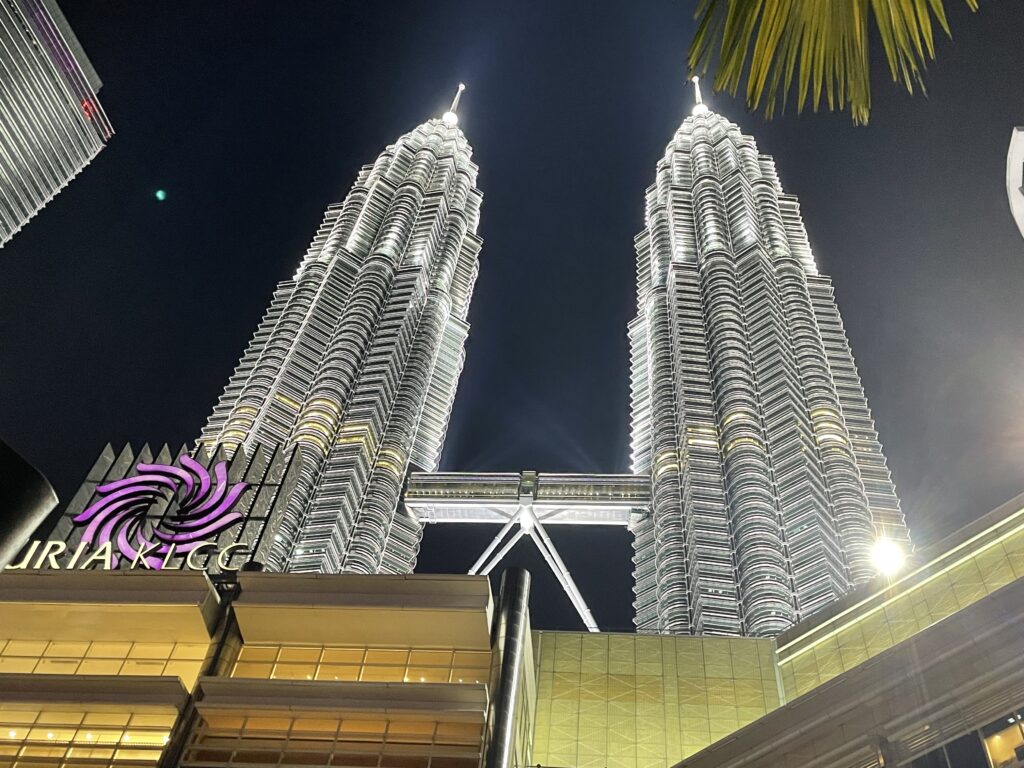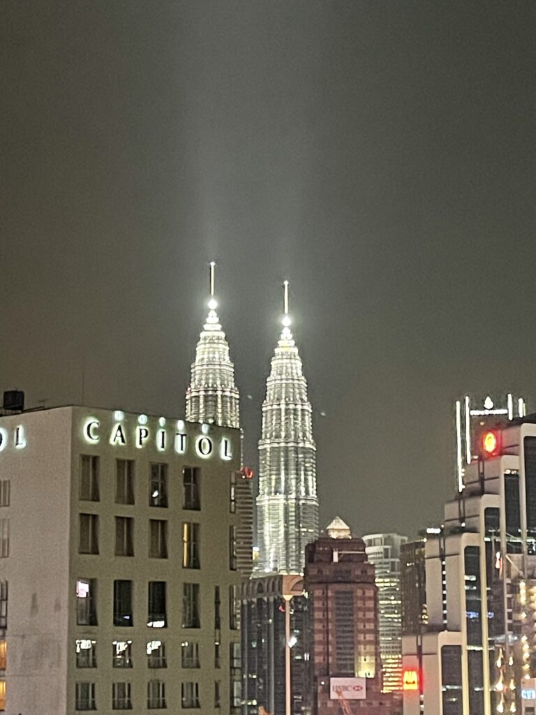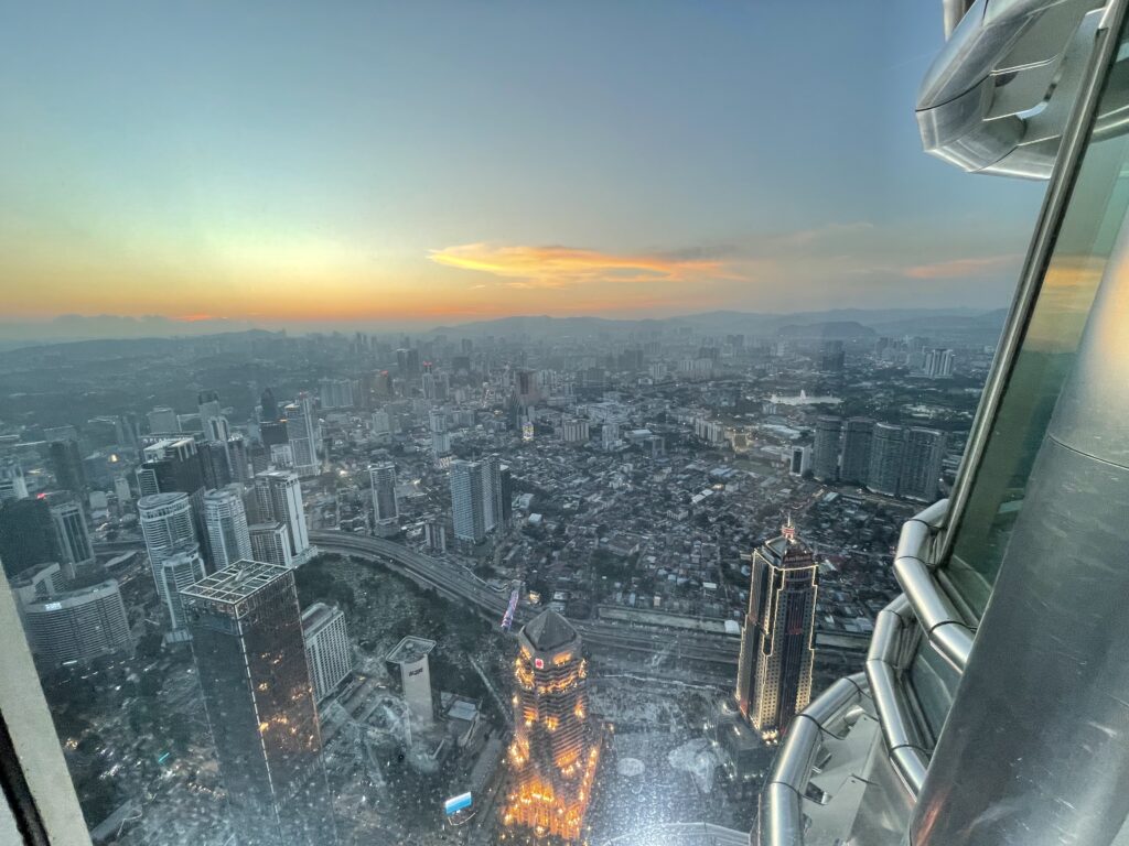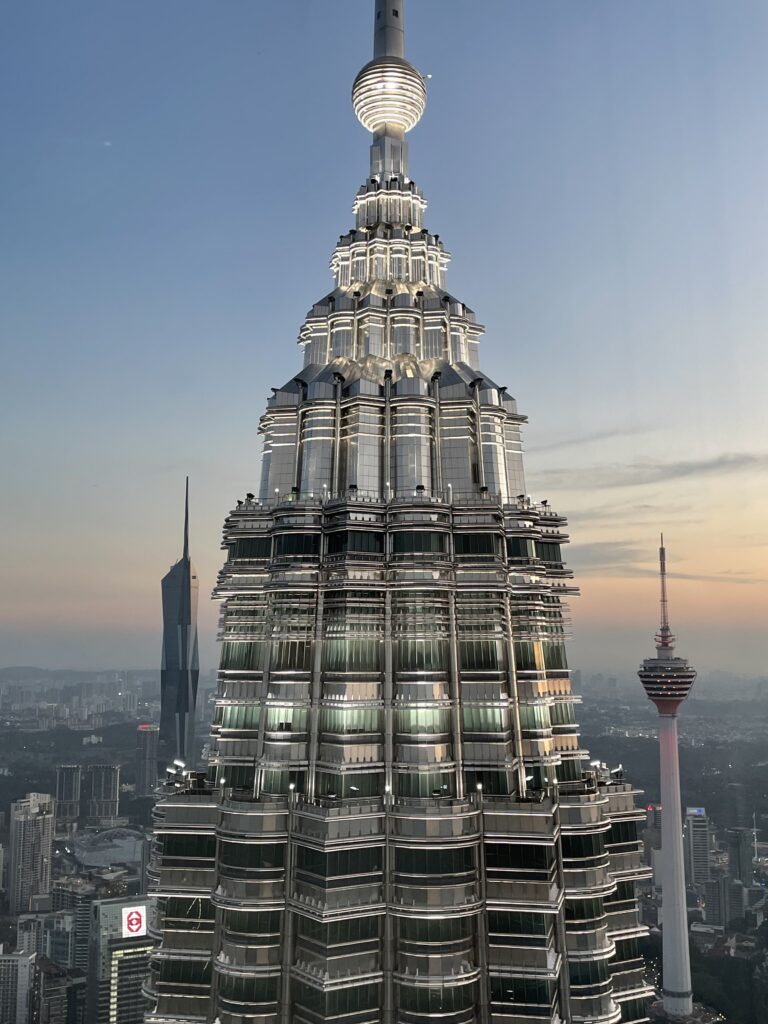 Two hours later we got off the bus at the main terminal again – with pretty numb backsides – and walked back to our hotel. We had a glass of wine whilst we sorted out the Grab app (think Malaysian Uber) as we had tickets to visit the Petronas Towers in the evening. So we grabbed a sandwich which we shared while we activated the (data only) e-SIM which we had purchased.