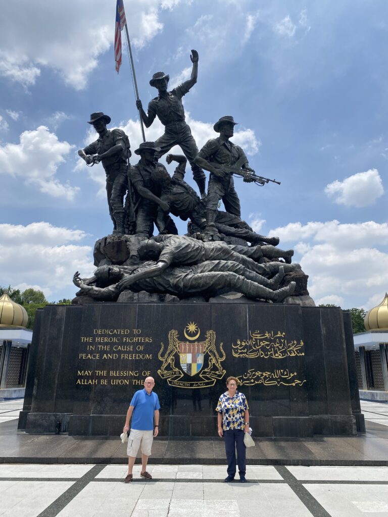 Flags were flying everywhere and it all felt very festive. The main statue was commissioned by an American where they depicted Malaysians slaying the Japanese. Interestingly the faces of the Malaysia soldiers were all Western as the American who carved it had never seen a Malaysian in the flesh so the features were all wrong….but made for an interesting story!