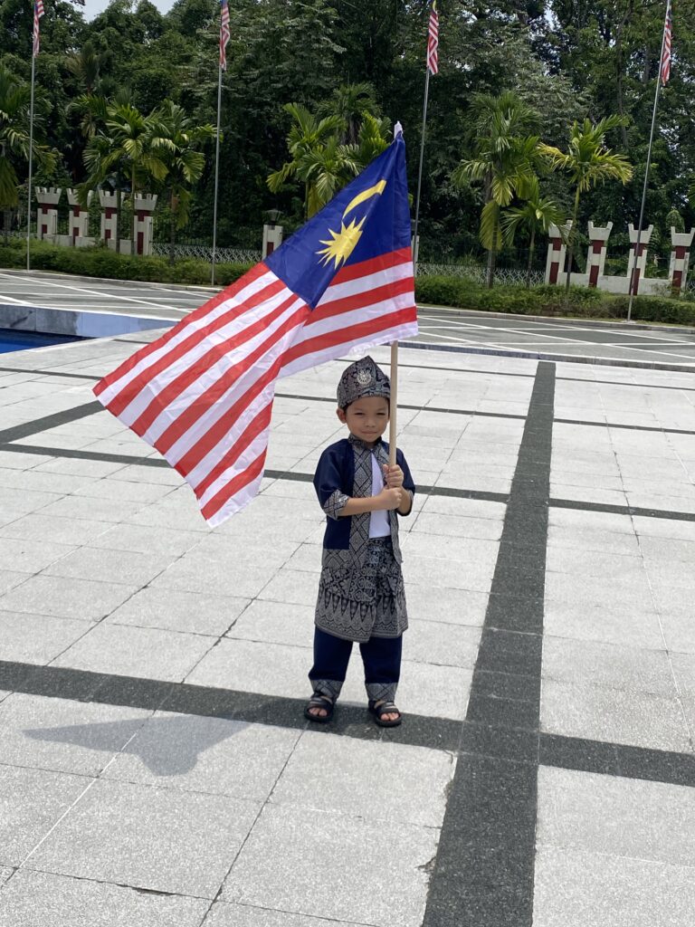 then moved onto the National Monument where we came across this adorable local boy all dressed up in national costume in preparation for Malaysia Day….