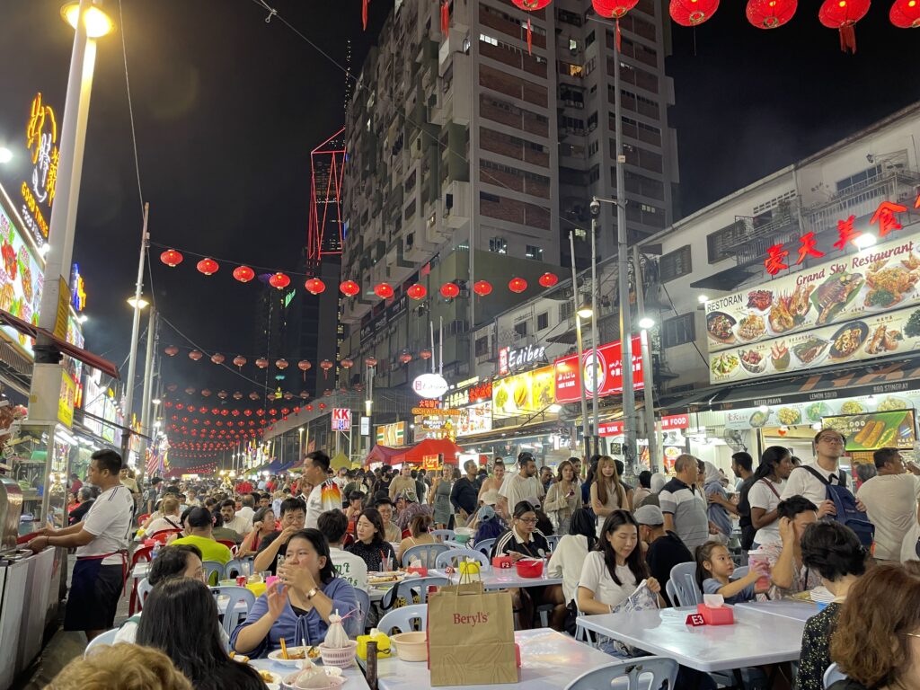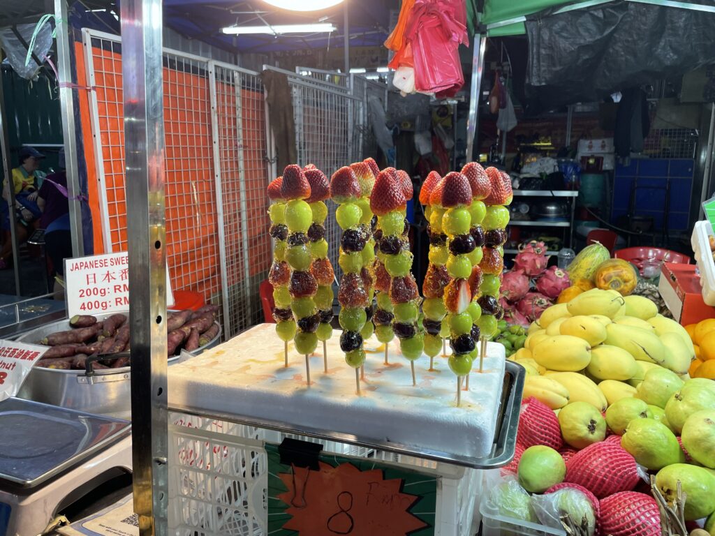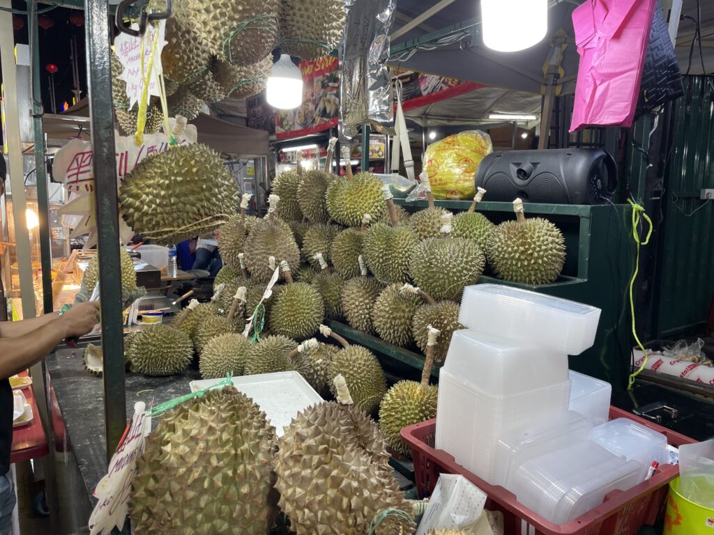 Having rested up, got cleaned up and changed again, we then walked down the road to Jalan Alor which is a famous street food area – we chose a licensed place and sat down. The food was great, the beer was nice and cold, although there was a lot of Durian on sale which stinks the place out!
