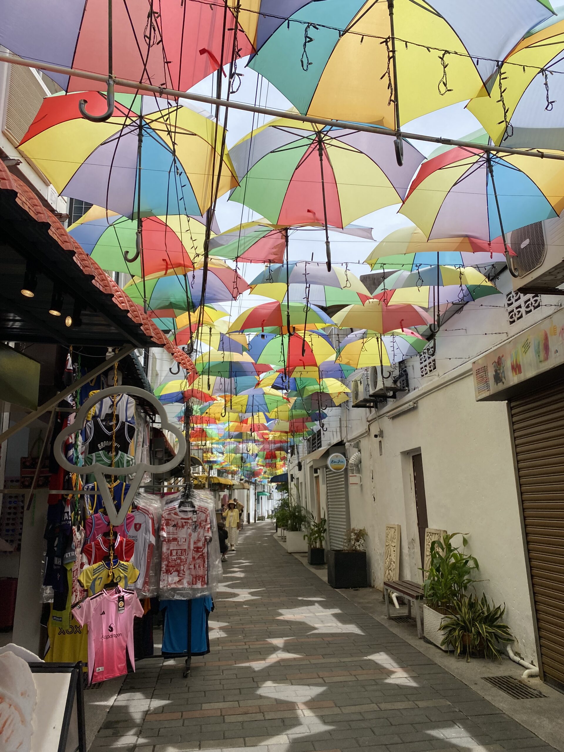 That evening after our lounge experience we headed down the strip to the food hall where Richard had chicken and beef satay while I tried another curry – Indian version this time, not Malaysian. After that we checked out the night markets again and this time we purchased some novelty LED lights in bamboo baskets which are now adorning our windowsill in the garden room / conservatory at home.