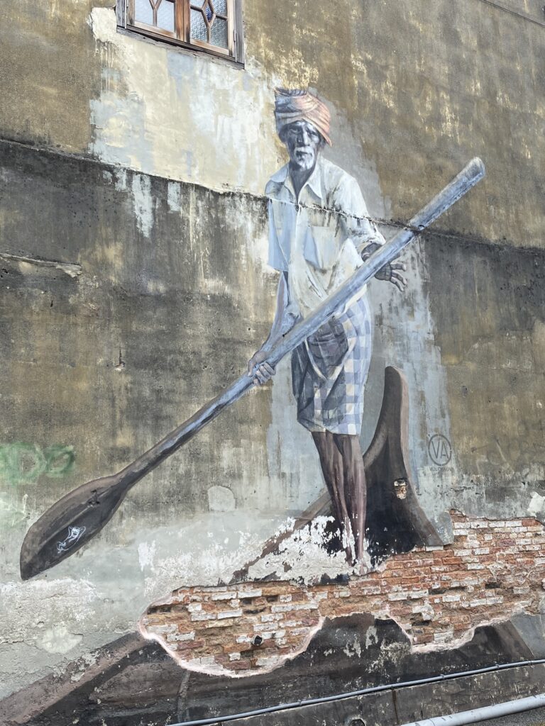 After our time in the Lounge we walked down the main strip and ended up in the Bora Bora bar…having checked out the night markets along the way. After a nice evening – and a glimpse of a fire show on the beach – we were walking back to our hotel when we popped into the adjacent (sister) Shangri-La Hotel – the Golden Sands – and had a final drink there listening to a live singer (who was pretty good although a bit cheesy LOL). Having had our fill we now decided to return to our hotel and, as we walked out the front entrance of the hotel, we were asked did we want a buggy ride home – well, we didn’t know, but they were complimentary to the Shangri-La guests so we said yes, thankfully, to avoid another 15 minutes walk in the heat and humidity. Earlier we had picked up some original small paintings, thinking they would look good in our upstairs hallway at home.