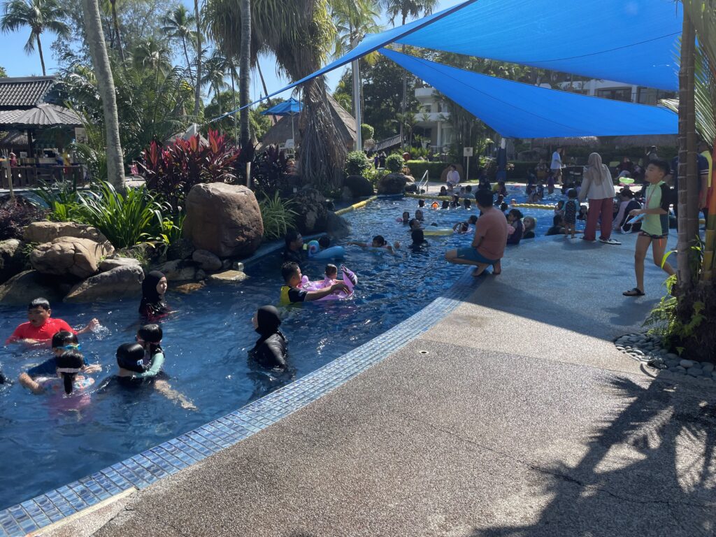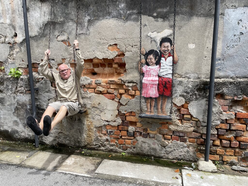 After that experience we headed to the pool for another cloudy but hot day, relieved not to have to use the ‘main’ pool as it was completely overrun with excitable noisy kids. Shane and Debbie were there this time and poor Shane had got pretty badly sunburnt, despite the cloudy conditions. So we donated some of our Aloe Vera after sun gel to the better cause…. not wanting to carry it home with us again. After our ‘normal’ complimentary lounge experience – by which time the waiters had lined up the wine glasses before we arrived next to Shane and Debbie to bag our seats – we took off down the strip and had a lovely Chinese at Andrew Kampung, a small local restaurant upstairs in a nearby shopping block. I had crispy duck and it was fantastic – great value too – especially when you consider we drank more wine…..