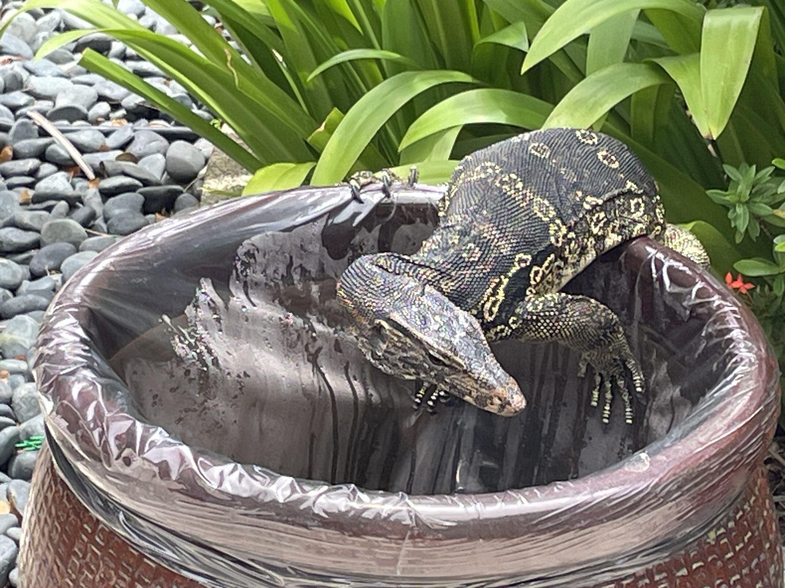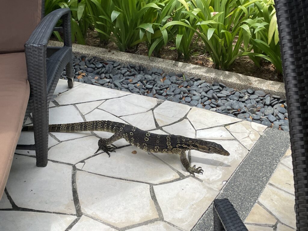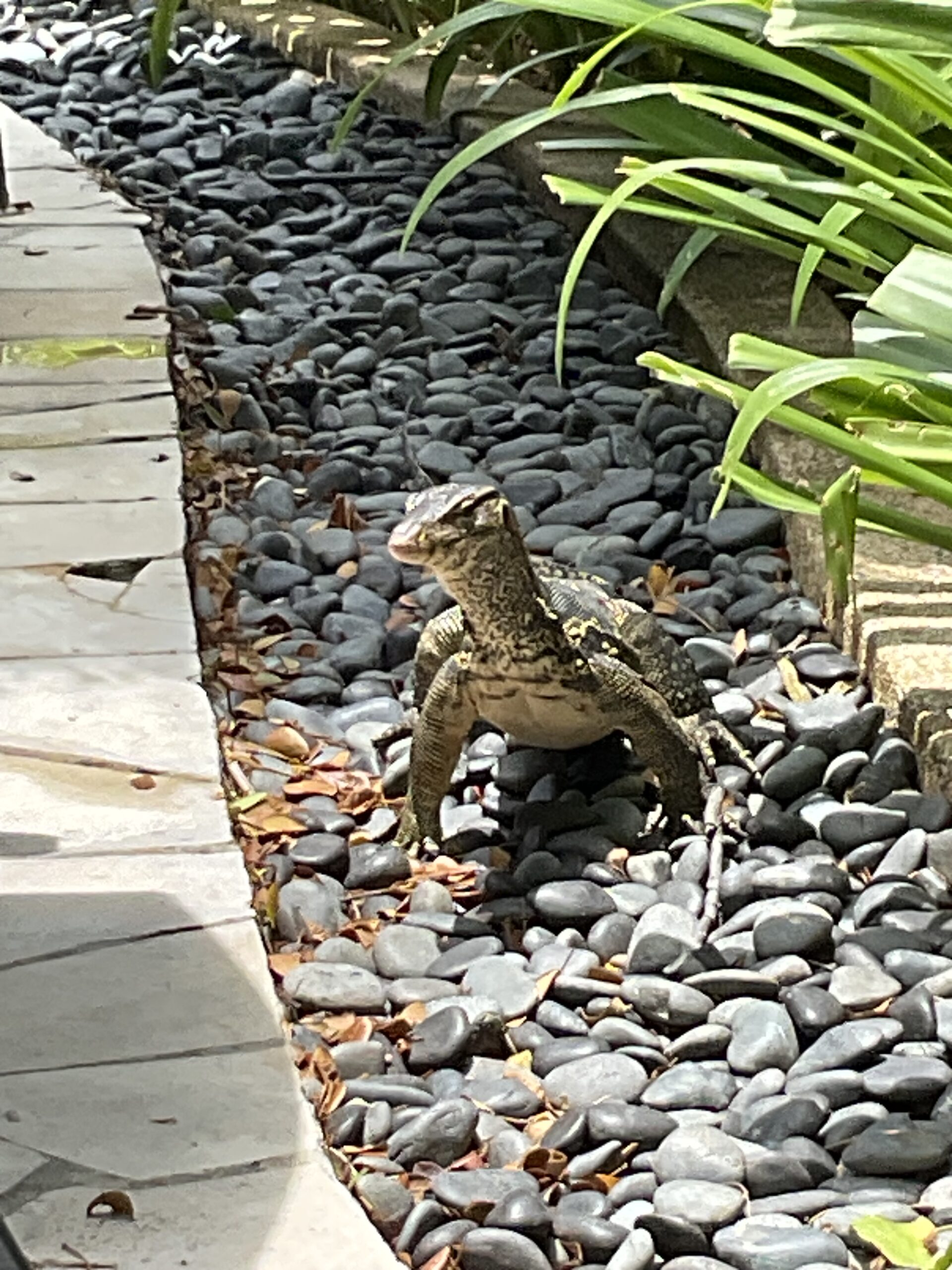 Wednesday was another pool day and this time we had company – large monitor lizards – who enjoyed walking around, nosing in the bin, and swimming across the pool when they got too hot. Was fun to look up from reading a book to see one of these lizards looking back from within the foliage behind your sunbed. Luckily they don’t bother us but there was a woman in the pool who got completely freaked out LOL. As we had been here a few days now, the pool barman had realised that we enjoyed a particular type of wine and made sure there was always one in his fridge so that he didn’t have to go and collect it from elsewhere when we ordered it to our table by the pool. Such a sweet guy – he had one day off when we there and it definitely didn’t run anywhere as smoothly without him….. Might have been influenced by Richard giving him a small tip every day…..