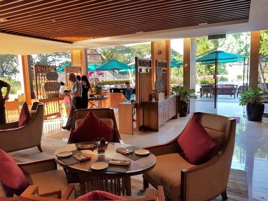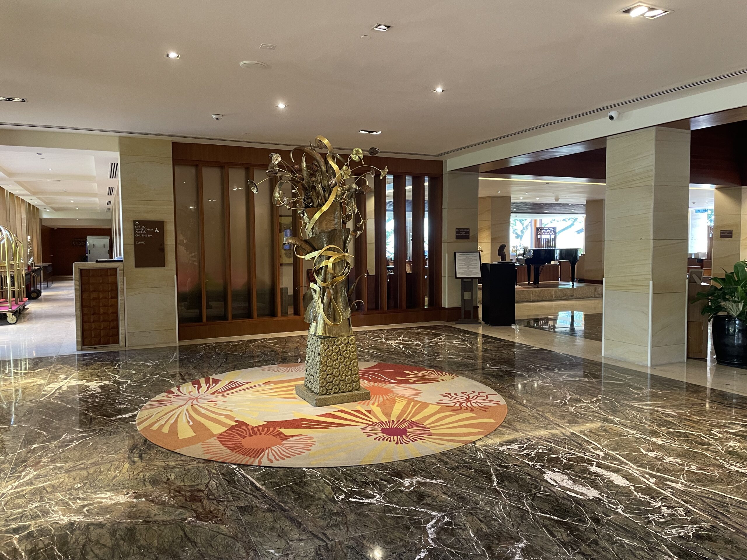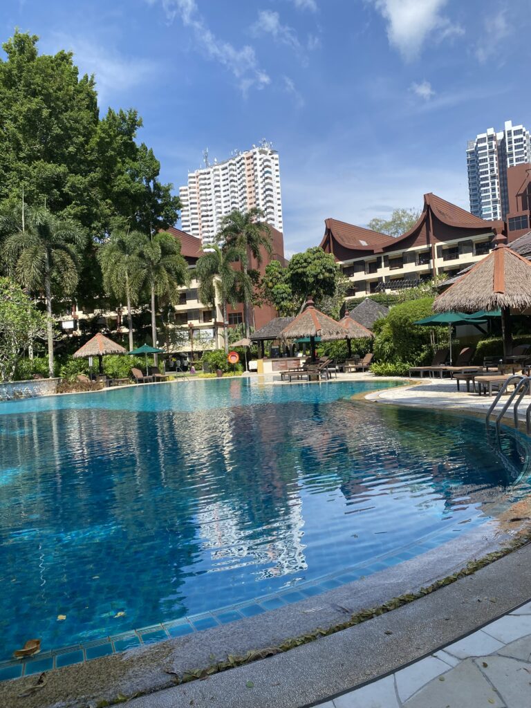 On Sunday 14 September, we had a leisurely start before enjoying our final breakfast in the Blue Mansion in Georgetown, checked out and informed hotel security about the car that was coming to pick us up (it was a very security conscious place and wouldn’t let cars into the courtyard without prior approval). All done we took seats in reception and waited….thankfully the driver arrived early. We had a very busy drive (in terms of traffic) from Georgetown to Batu Ferringhi – which is the touristy beach area of Penang – and where we had decided to spend our final week having some R&R. We arrived at the Shangri La at 12.50 and, although we had requested a 1pm check in, this had not been promised so we left our cases in reception at the Shangri-La Rasa Sayang Resort and Spa. Again this hotel was split into two wings – Rasa Wing (adult-only area) and the Garden Wing. We then waited while enjoying complimentary drinks and the room was ready at 13.10. So we were very happy campers.