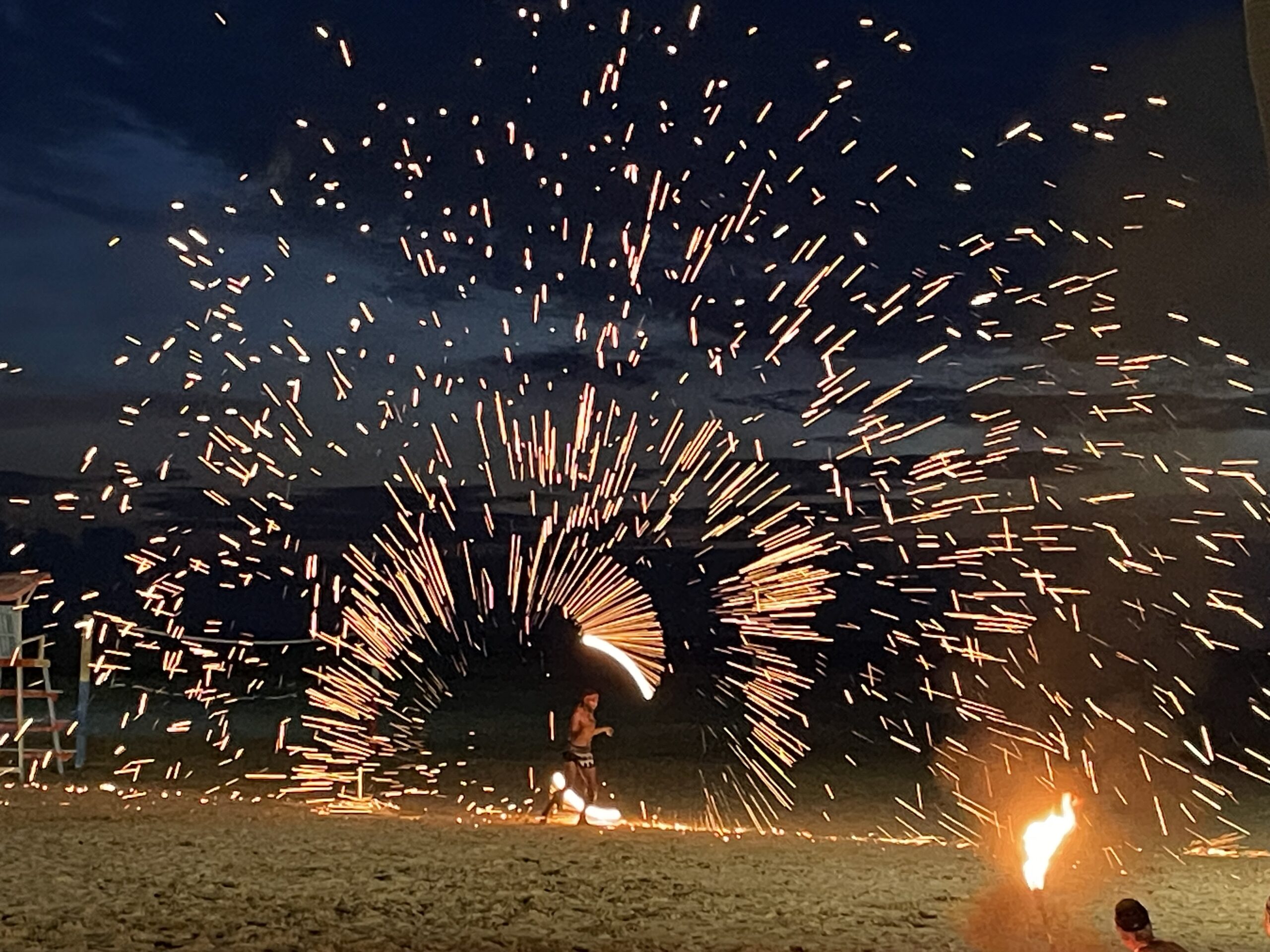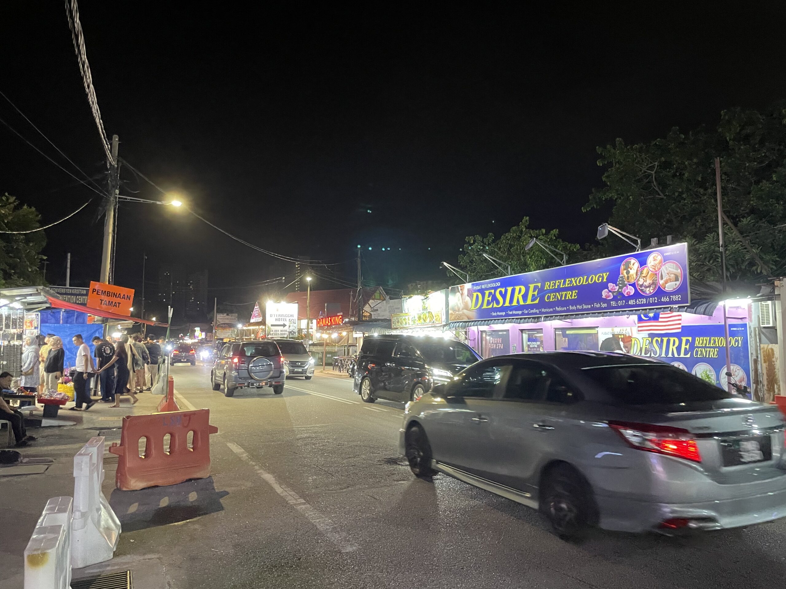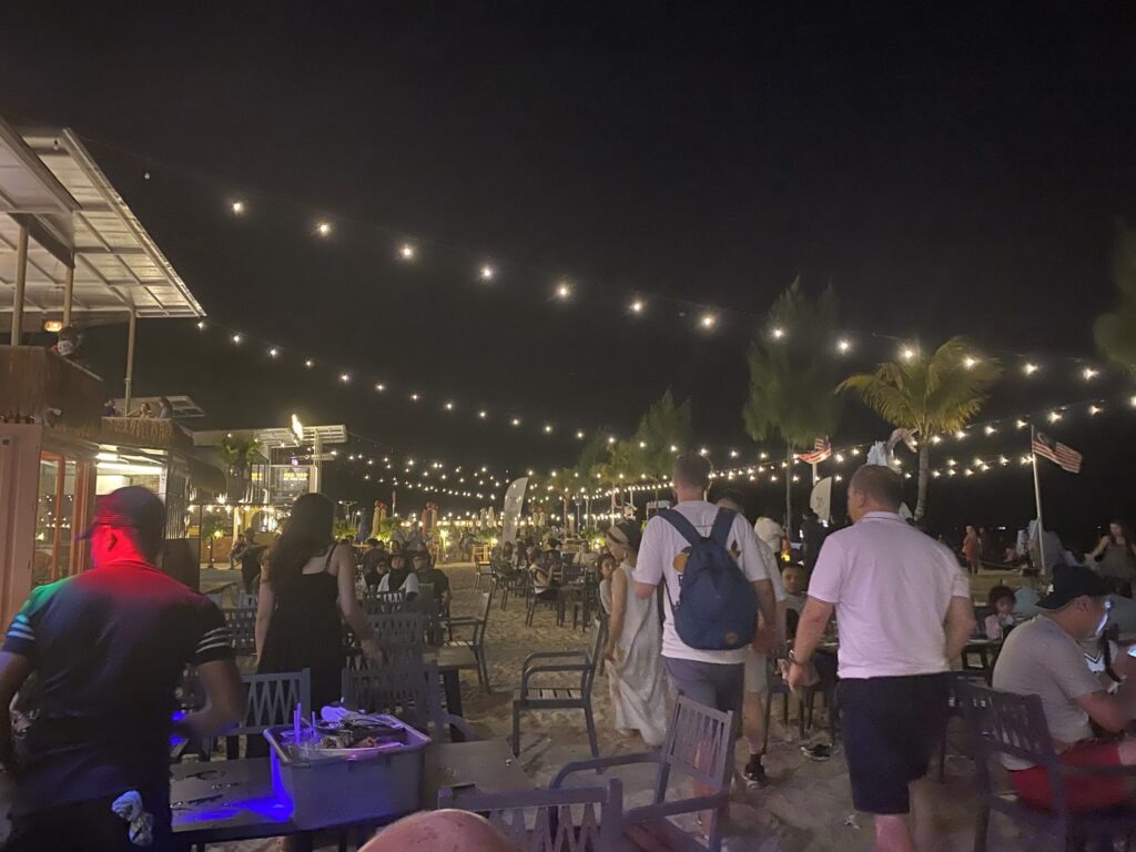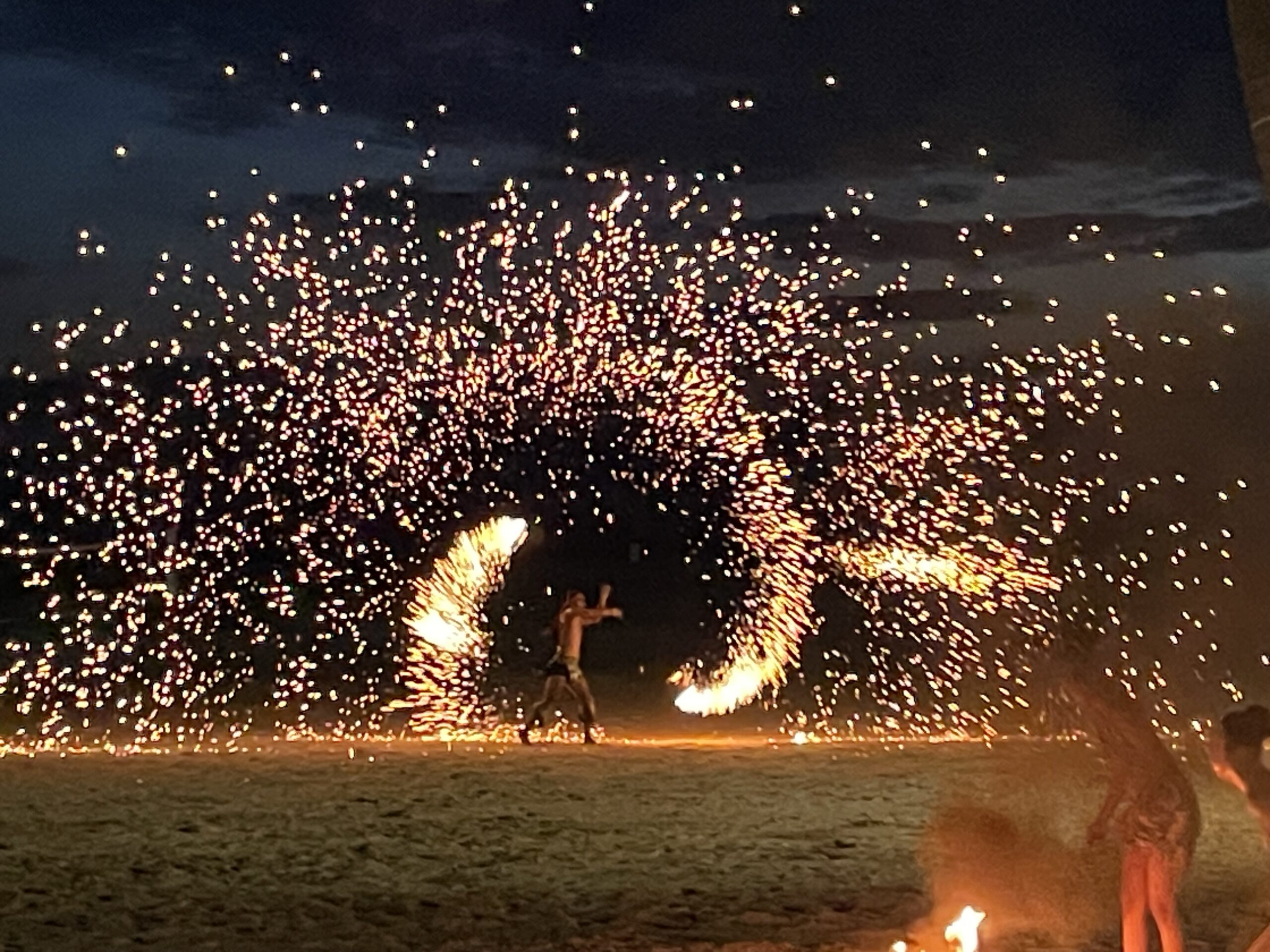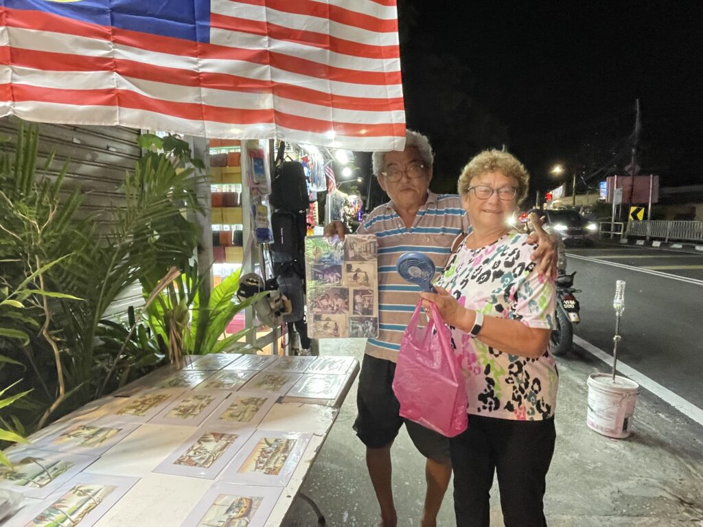 After we had finished our meal – with soft drinks only as we had managed to find another pure Halal venue – we took a very long walk to Batu Ferringhi Bay… Along the way Richard managed to buy some new t-shirts and did a great job bartering. At the Bay we found a table on the beach just below a balcony where a live band was playing – they were pretty good – and the audience were certainly enjoying it. Then the main event – which we had actually come for – the fire show started. The participants often broke off with their flaming torches to frighten the audience…one swept a torch directly over my head very close (well close enough to feel the heat of the flames) and, luckily I didn’t move as I didn’t see it coming LOL. Anyway, we thoroughly enjoyed the spectacular show the wine was average and it was pretty buggy on the beach…… What I didn’t enjoy was having to queue for the pretty grim public loos on the beach and then being charged to use them…but at least I found a Western one!