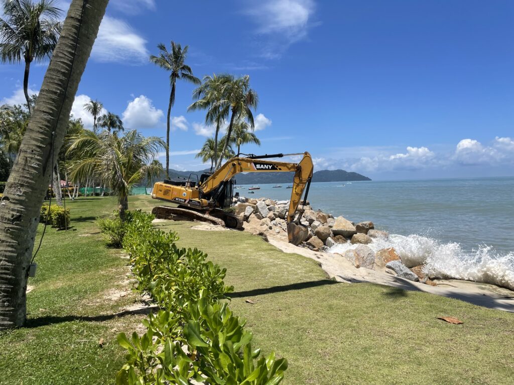 Tuesday was a nicer weather day and we spent the day at the pool before returning to the lounge for the afternoon session…. During the day we did spend a little time wandering the beach and the promenade path that led to the other Shangri La hotel, Golden Sands. The sea here is dangerous in that it hosts a lot of box jelly fish so had no desire to go in, especially as the beach had been eroded by bad storms and high winds, so clambering over rocks / sea defences was never on my list of fun things to do. Lots of repairs going on to address this issue……..